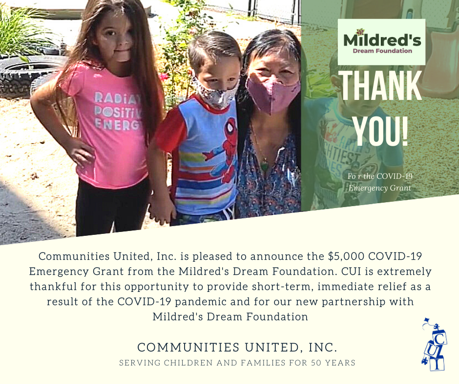Mildred's Dream Foundation GrantPrerna JainSep 23, 20201 min readCUI is a recipient of the COVID-19 Emergency Grant!